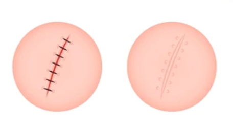 一般的には知られてはないですが、縫い方による目立つ傷跡と目立たない傷跡には、こんな違いがあるのです。